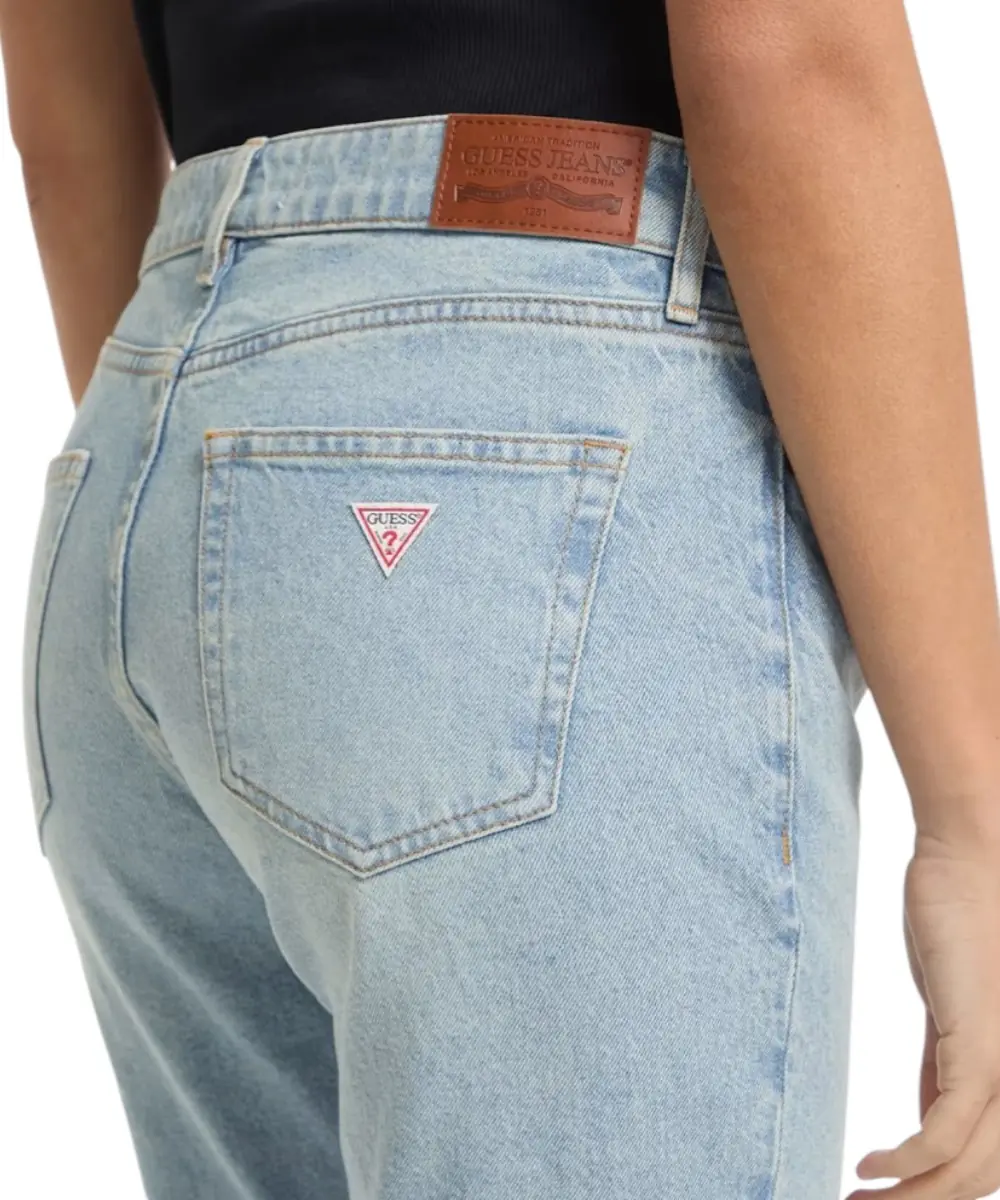 Λεπτομέρειες: Το εμβληματικό τριγωνικό λογότυπο Guess στην πίσω τσέπη.