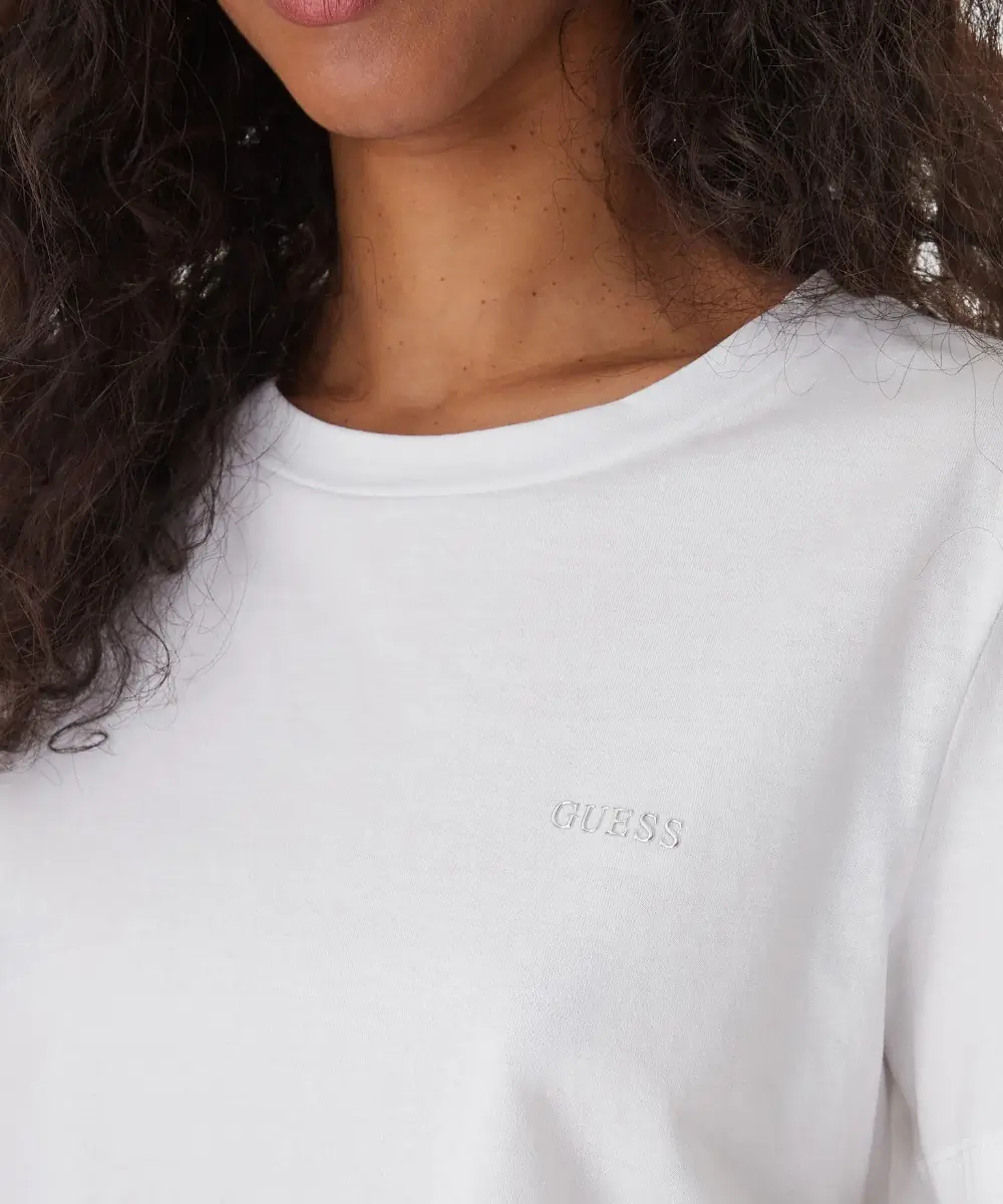 Η γυναικεία κοντομάνικη μπλούζα της συλλογής Guess Active αποτελεί το ιδανικό “basic” κομμάτι που συνδυάζει την αθλητική άνεση με την κομψότητα του brand. Κατασκευασμένη από 100% βαμβάκι με ματ φινίρισμα, αυτή η λευκή (G011) t-shirt προσφέρει μια καθαρή και μίνιμαλ αισθητική, ιδανική για τις δραστηριότητές σας κατά τη διάρκεια της άνοιξης.