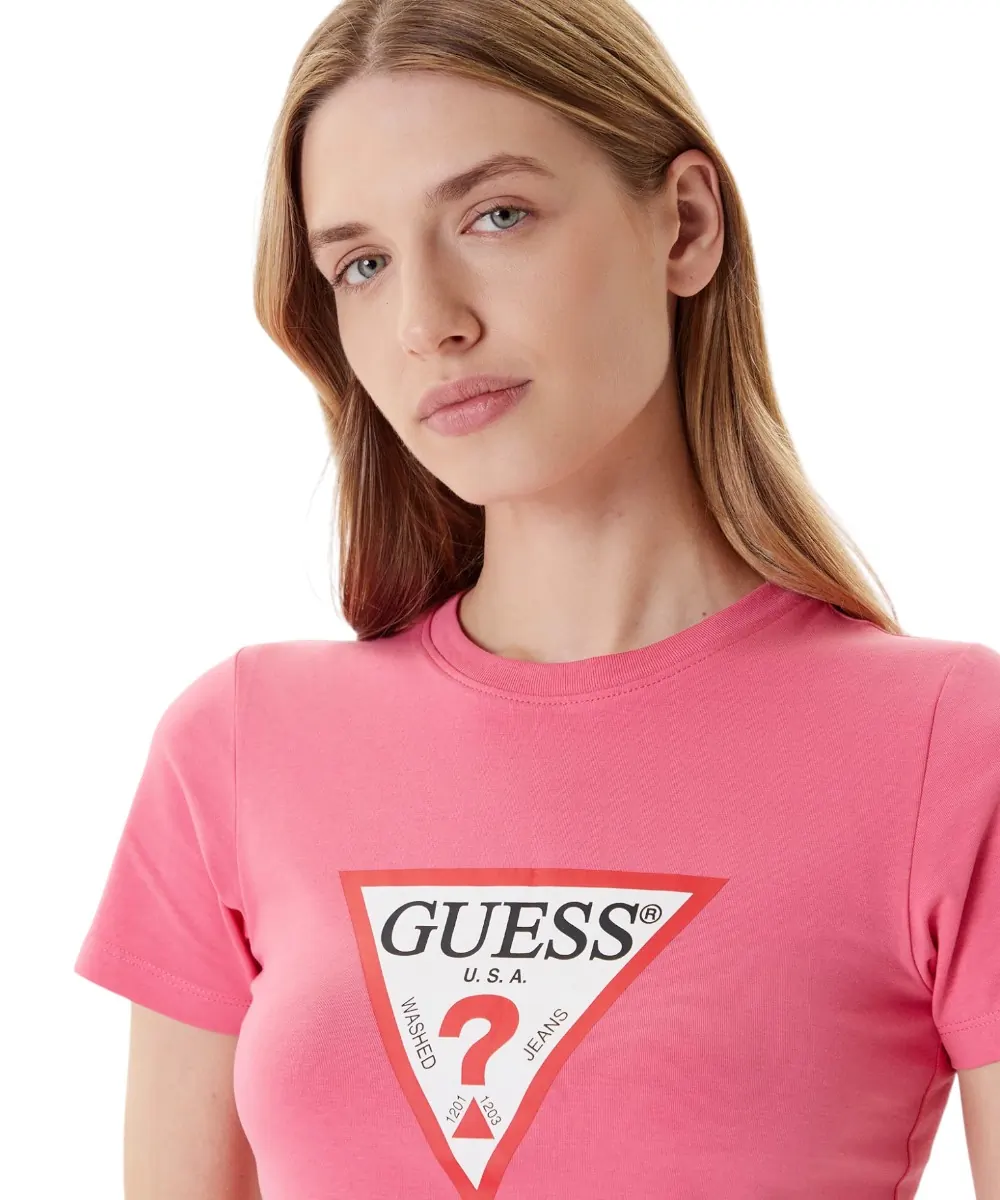 Σχέδιο: Τυπωμένο τρίγωνο logo GUESS στο στήθος — το iconic τριγωνικό σχήμα που ξεχωρίζει