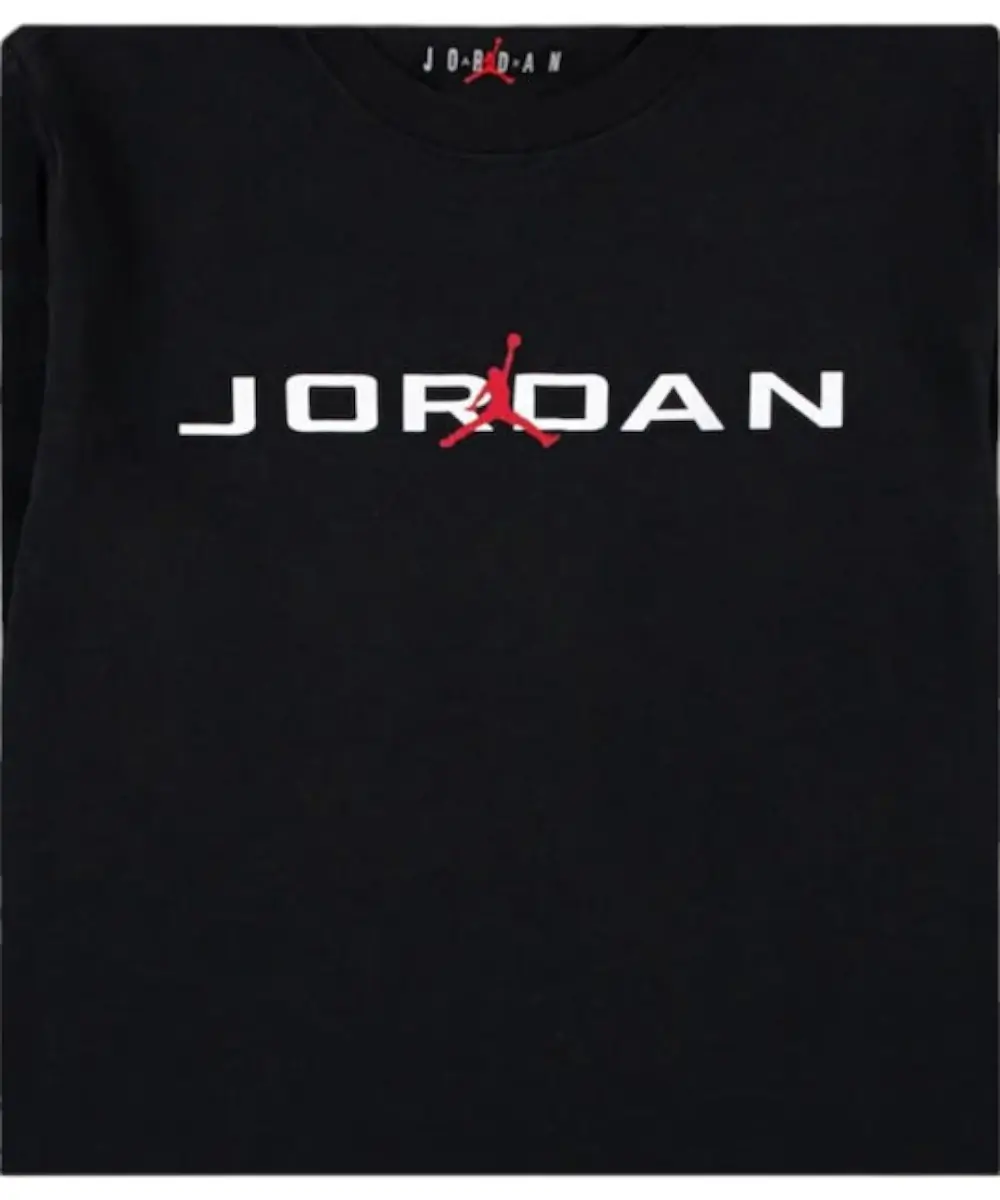 Παιδικό μακρυμάνικο T-shirt με στρογγυλή λαιμόκοψη από τη Jordan, ιδανικό για καθημερινή χρήση και δραστηριότητες. Το μαλακό ύφασμα από βαμβάκι και πολυεστέρα προσφέρει άνεση και ανθεκτικότητα, ενώ η στάμπα και το λογότυπο Jordan ολοκληρώνουν το αθλητικό, streetwear look.