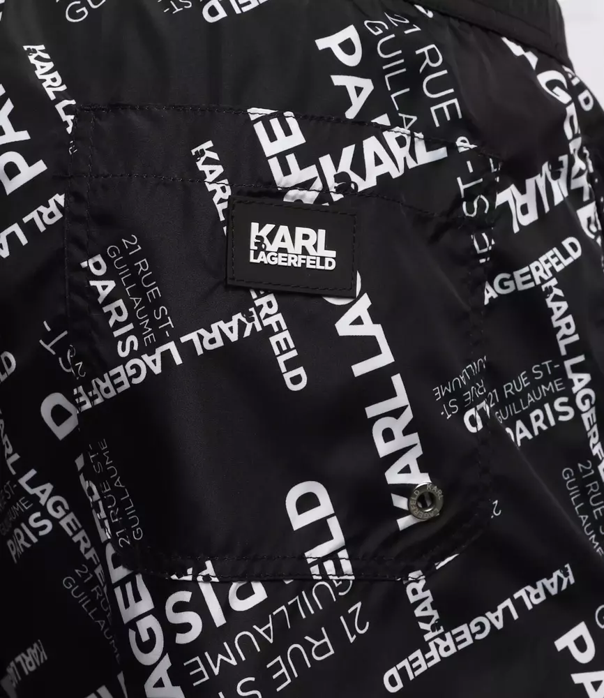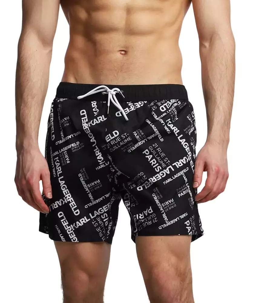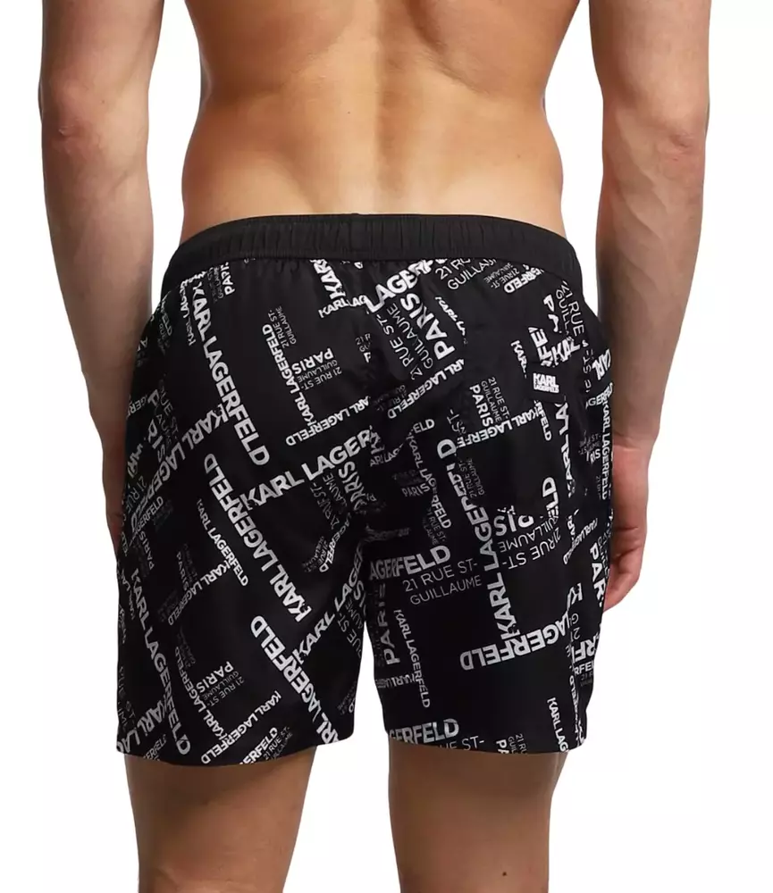 Ανδρικό μαγιό σε στυλ σορτς της εταιρίας Karl Lagerfeld σε μαύρο χρώμα με print, ιδανική επιλογή για το καλοκαίρι.