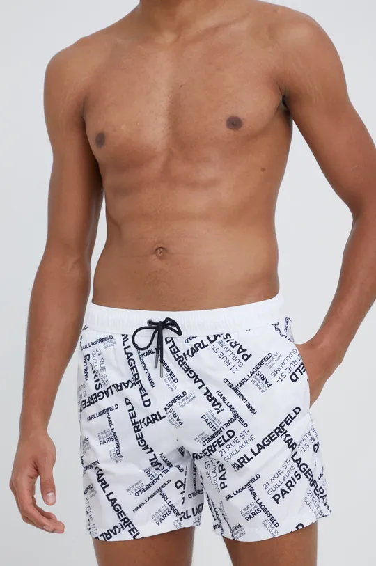 Ανδρικό μαγιό σε στυλ σορτς της εταιρίας Karl Lagerfeld σε λευκό χρώμα με print, ιδανική επιλογή για το καλοκαίρι.