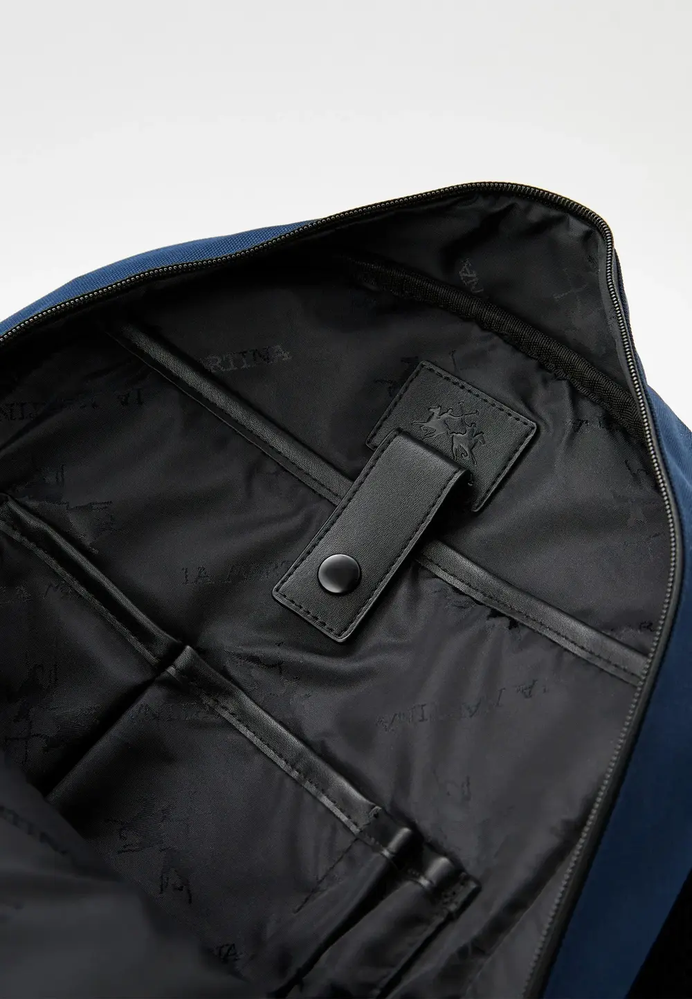 Ανδρικό σακίδιο πλάτης της εταιρείας La Martina, κατασκευασμένο από ύφασμα σε μπλε χρώμα.