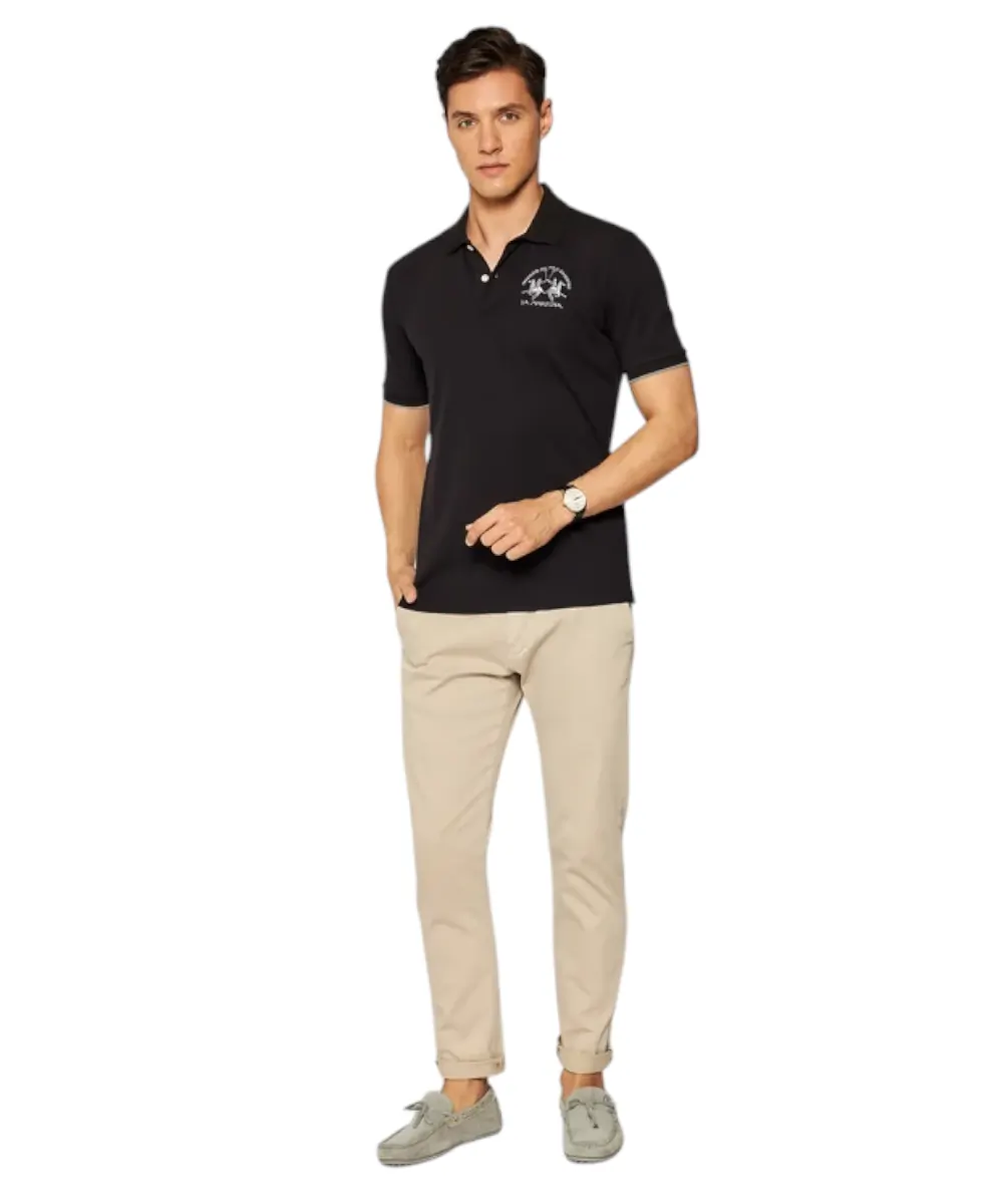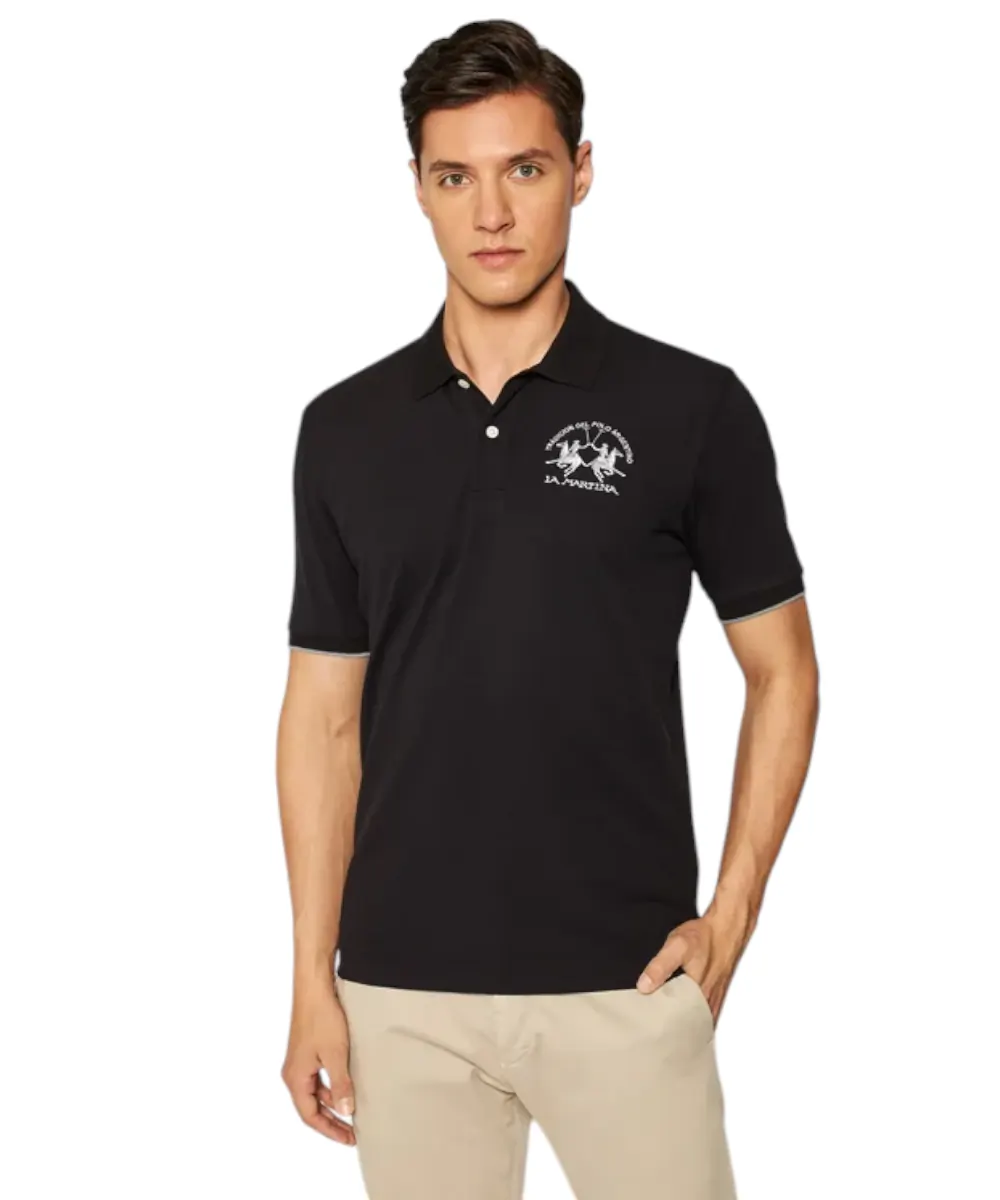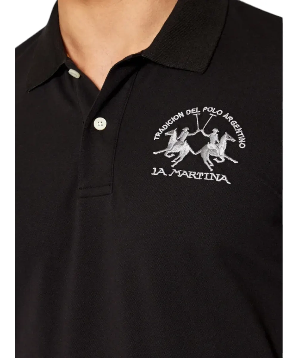 Ανδρικό μονόχρωμο, κοντομάνικο, βαμβακερό μπλουζάκι πόλο σε κανονική εφαρμογή. Το λογότυπο La Martina με αντίθεση ραμμένο στο στήθος. Αυτό το ευέλικτο ρούχο ταιριάζει τέλεια με ένα τζιν από τη συλλογή.