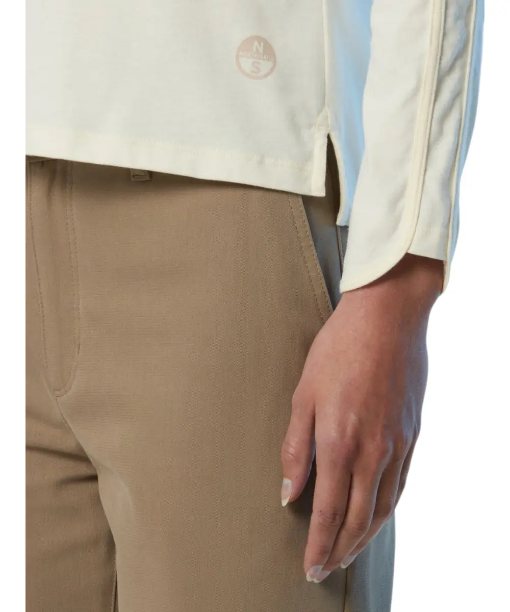 Σχεδιασμένο με γνώμονα την άνεση, το στυλ και τον πλανήτη, αυτό το μακρυμάνικο πόλο είναι φτιαγμένο από ελαφρύ βαμβακερό ζέρσεϊ με απαλό φινίρισμα ροδακινί, που περιέχει ένα μείγμα οργανικών και ανακυκλωμένων ινών. Οι ραφές στα μανίκια επιμηκύνουν τη λεπτή σιλουέτα του, ενώ ένα τύπωμα στο πίσω στρίφωμα αποτίει φόρο τιμής στην κληρονομιά μας στον ωκεανό.