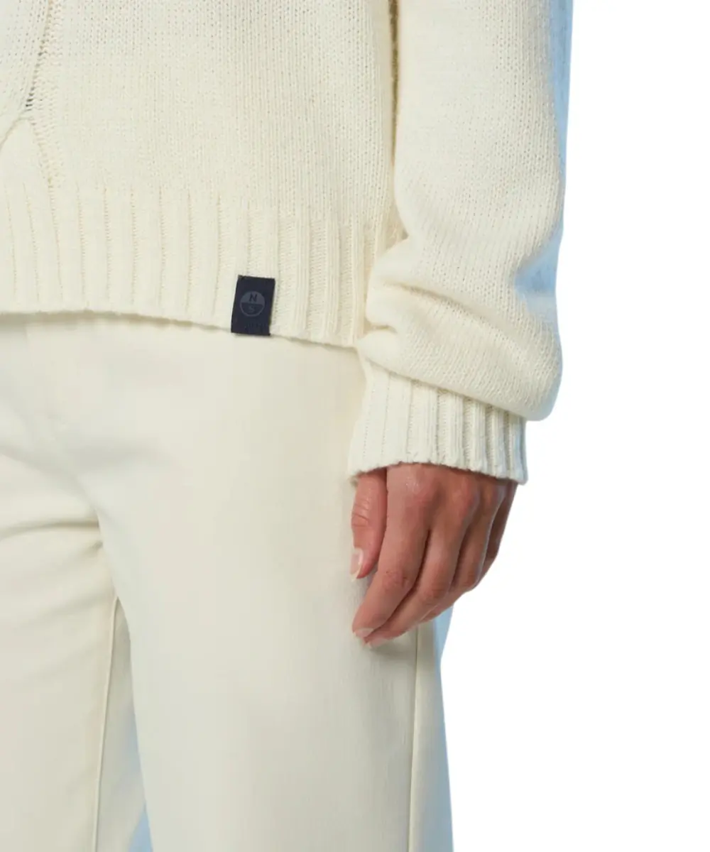 Μια μοντέρνα εκδοχή ενός εμβληματικού ιστιοπλοϊκού ενδύματος. Ανανεώνοντας το κλασικό πλεκτό Aran με ένα εντυπωσιακό κεντρικό νήμα, αυτό το πουλόβερ με ψεύτικη λαιμόκοψη είναι κατασκευασμένο από ένα εξαιρετικά απαλό μείγμα κασμίρ που περιέχει ανακυκλωμένο μαλλί και νάιλον ίνες: ένα ακόμη παράδειγμα της δέσμευσής μας να κάνουμε θετικά βήματα για τον πλανήτη. Λεπτομερής λεπτομέρεια με μια διακριτική ετικέτα North Sails στο στρίφωμα.