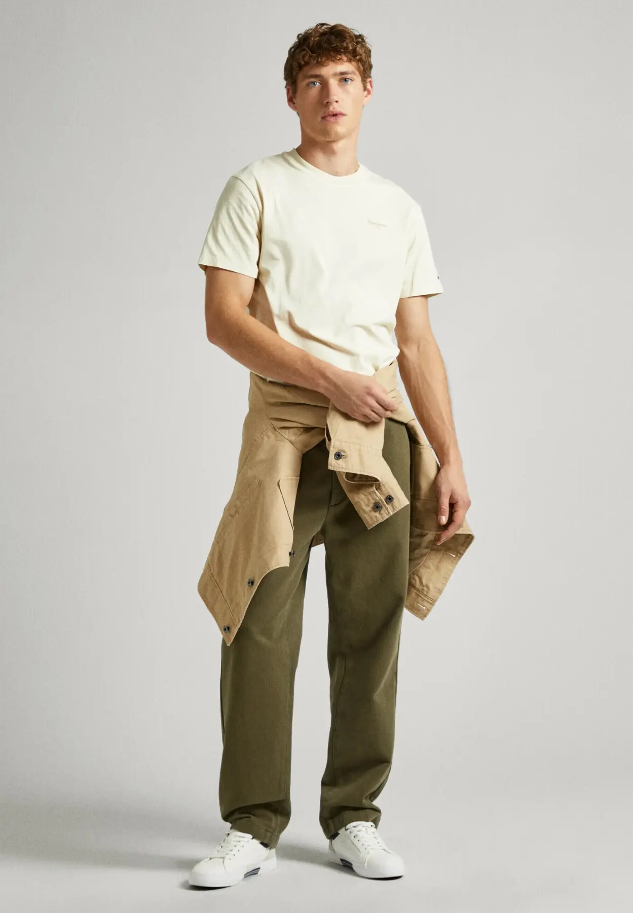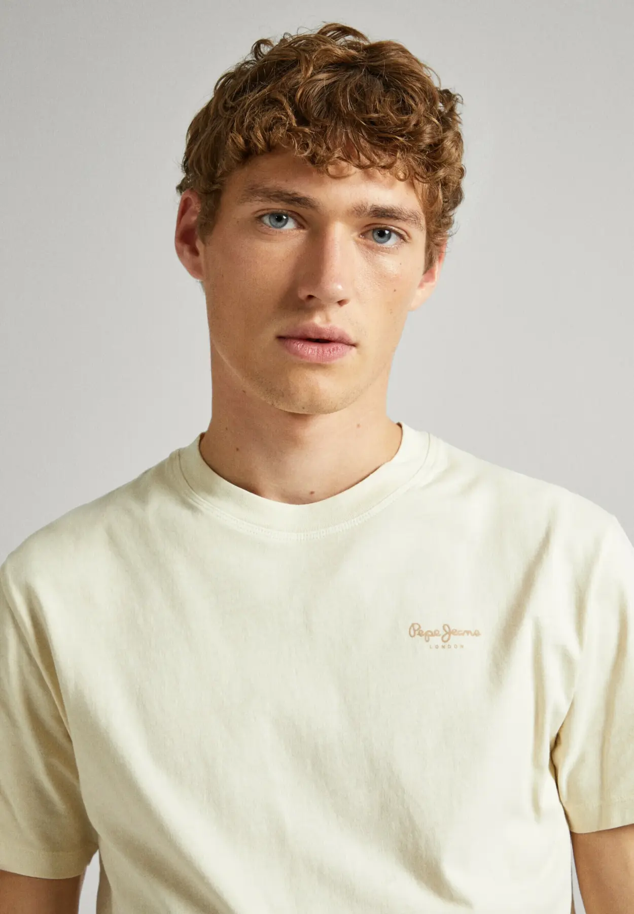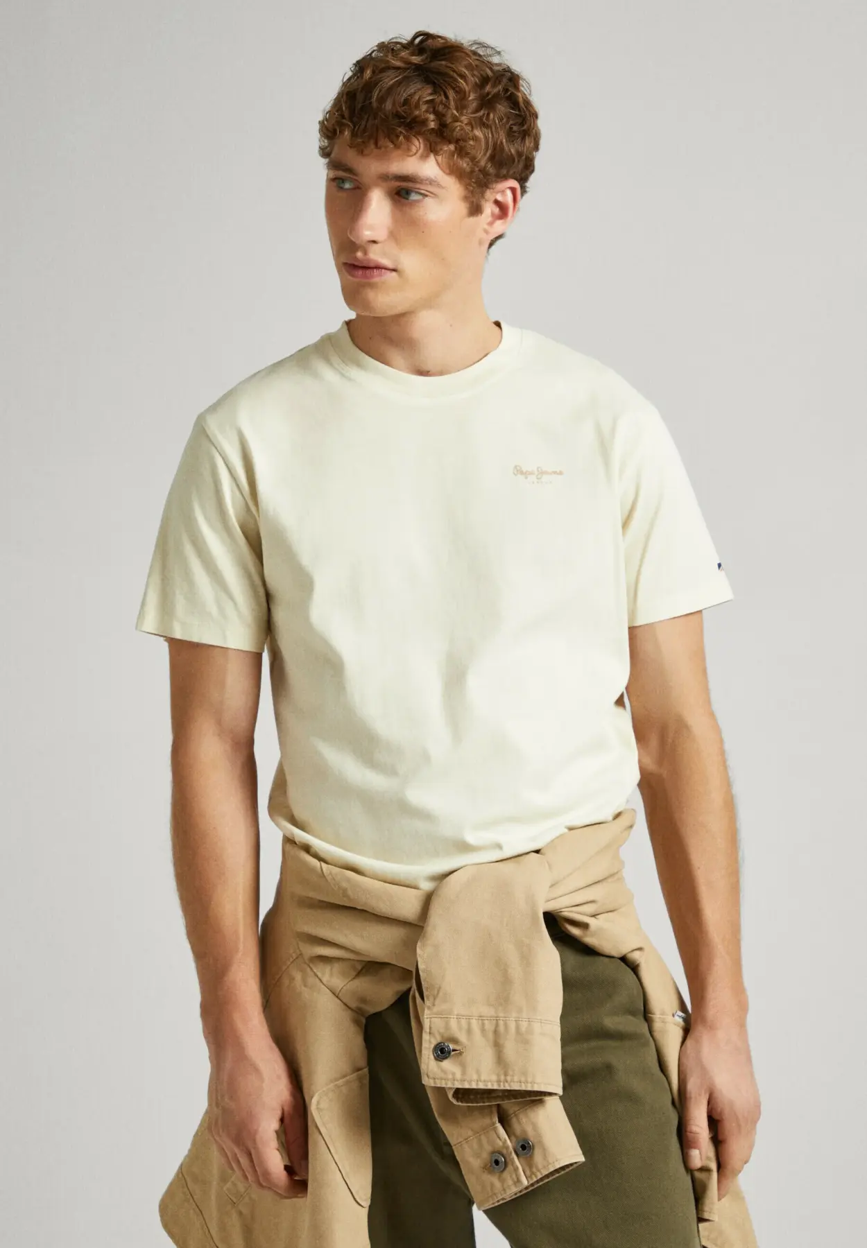 - Στάμπα Pepe Jeans London με μπεζ καφέ γράμματα αριστερά στο στήθος