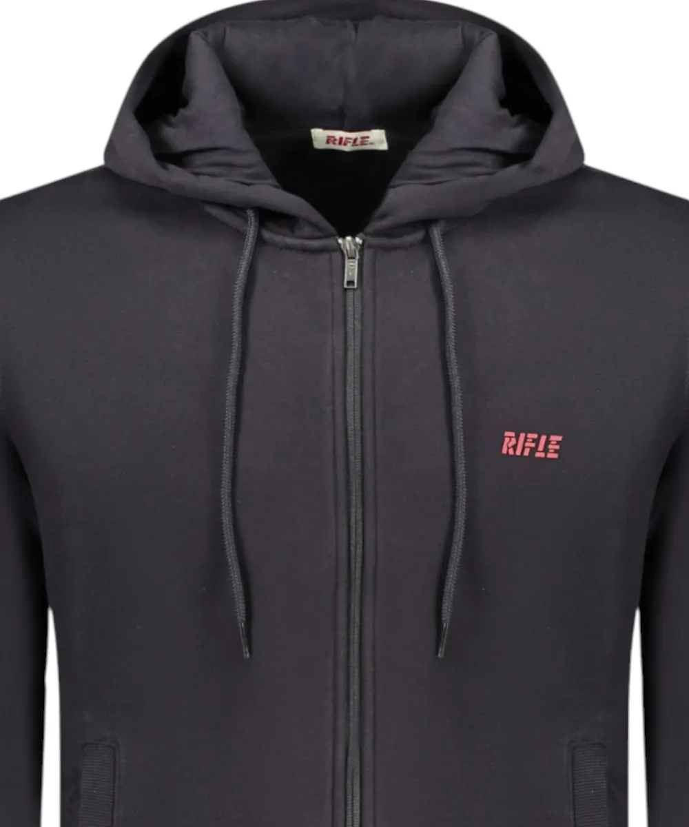 Διαθέτει κουκούλα με κορδόνι, full φερμουάρ, δύο πλαϊνές τσέπες και ανάγλυφο λογότυπο RIFLE στο στήθος — λεπτομέρειες που δίνουν έναν διακριτικό αλλά premium χαρακτήρα.