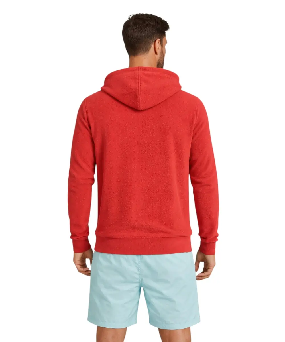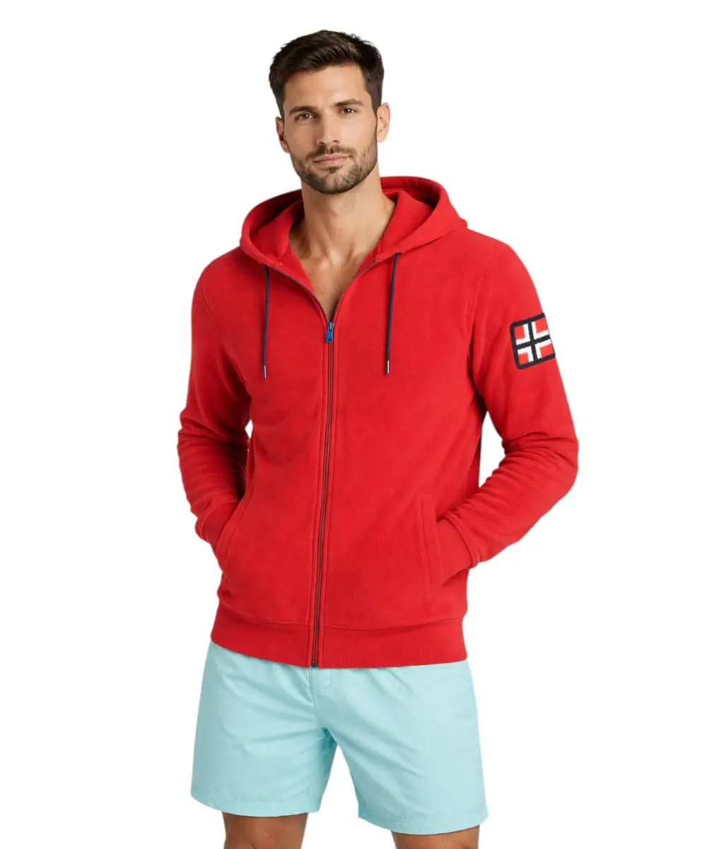 Αυτή η ανδρική ζακέτα με κουκούλα από τη συλλογή Norway 1963 – Scuola Nautica Italiana, σε έντονο κόκκινο χρώμα (“Red”), αποτελεί μια δυναμική επιλογή για προστασία από το κρύο. Κατασκευασμένη από μαλακό υλικό fleece, προσφέρει εξαιρετική θερμότητα και άνεση, κάνοντάς την ιδανική για τις καθημερινές σας δραστηριότητες ή τις αποδράσεις στη φύση.