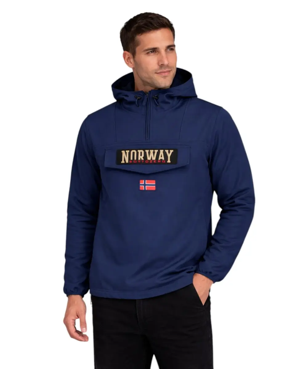 Το jacket διαθέτει κουκούλα, μισό φερμουάρ στο μπροστινό μέρος και μεγάλη κεντρική τσέπη με κλείσιμο zip και velcro για πρακτική αποθήκευση. Επιπλέον, η πλαϊνή τσέπη με φερμουάρ προσφέρει ασφάλεια για μικροαντικείμενα, ενώ το χαρακτηριστικό logo της Norway 1963 και οι εφαρμογές ολοκληρώνουν το design. Η κατασκευή από τεχνικό ύφασμα soft shell προσφέρει άνεση, ελαστικότητα και ανθεκτικότητα, καθιστώντας το ιδανικό για δραστήριο lifestyle.