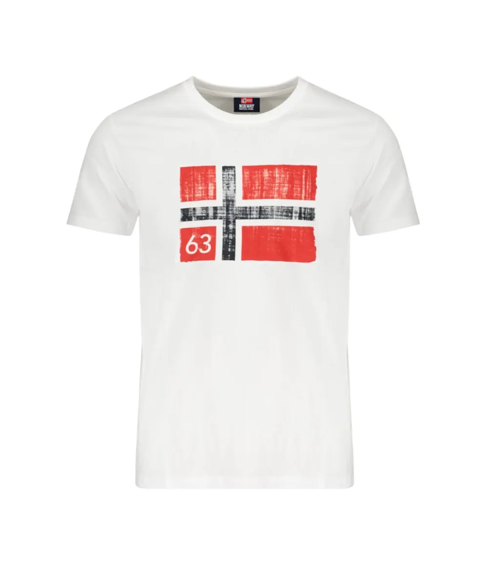 Ανακαλύψτε την casual κομψότητα του ανδρικού T-Shirt NORWAY 1963. Το κοντομάνικο μοντέλο, με λαιμόκοψη, είναι διακοσμημένο με γραφικό στάμπα και το εμβληματικό λογότυπο. Κατασκευασμένο από 100% ποιοτικό βαμβάκι, αυτό το μπλουζάκι εξασφαλίζει άνεση και στυλ. Το λευκό χρώμα το καθιστά ευέλικτο για κάθε συνδυασμό. Ιδανικό για μια καθημερινή εμφάνιση με μια πινελιά πρωτοτυπίας. Προσθέστε ένα διαχρονικό κομμάτι στην γκαρνταρόμπα σας.