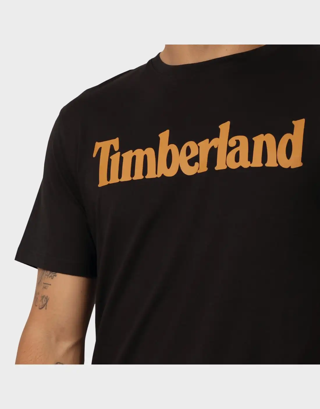 Ανδρικό T-shirt με κοντό μανίκι της εταιρίας Timberland σε κίτρινο χρώμα με στάμπα, για casual εμφανίσεις.