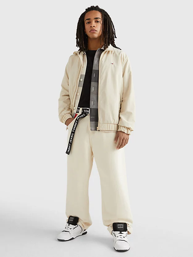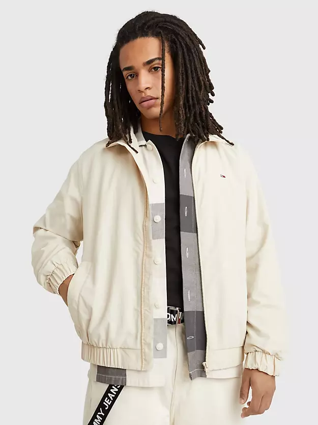Ανδρικό μπουφάν της εταιρίας Tommy Hilfiger σε μπεζ χρώμα. Κατασκευασμένο από ειδικό υλικό που αντέχει στον αέρα. Ιδανικό για τους χειμερινούς μήνες.