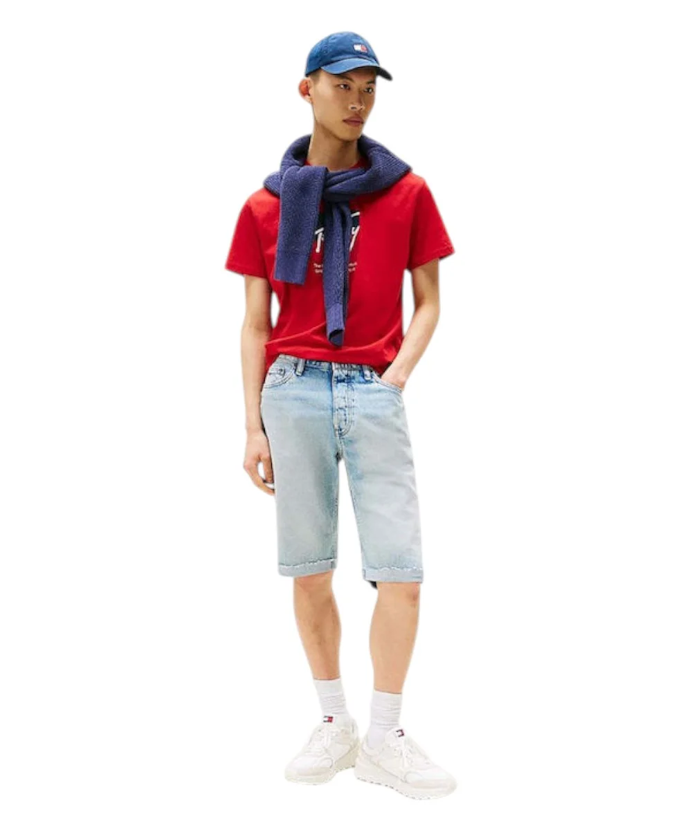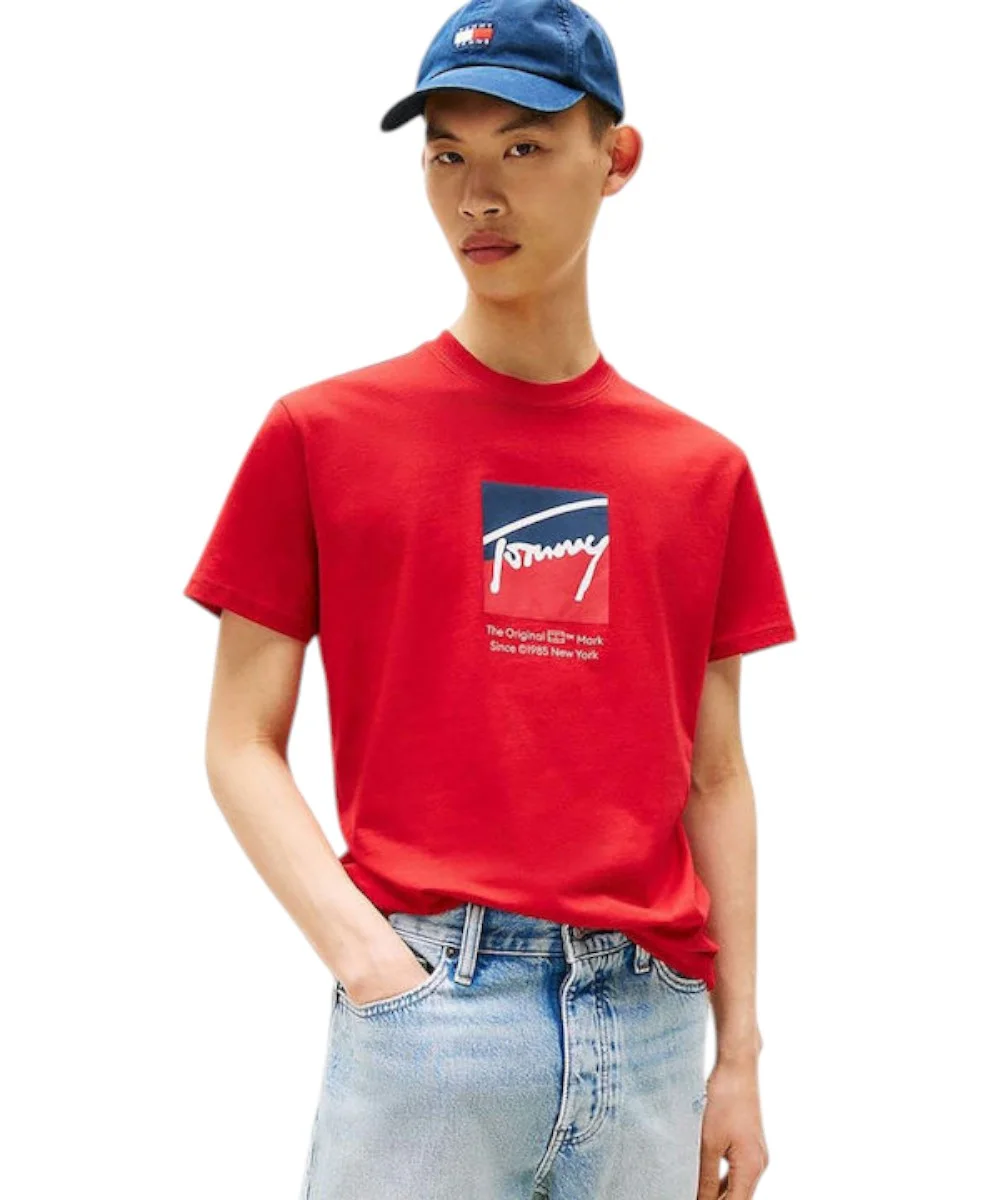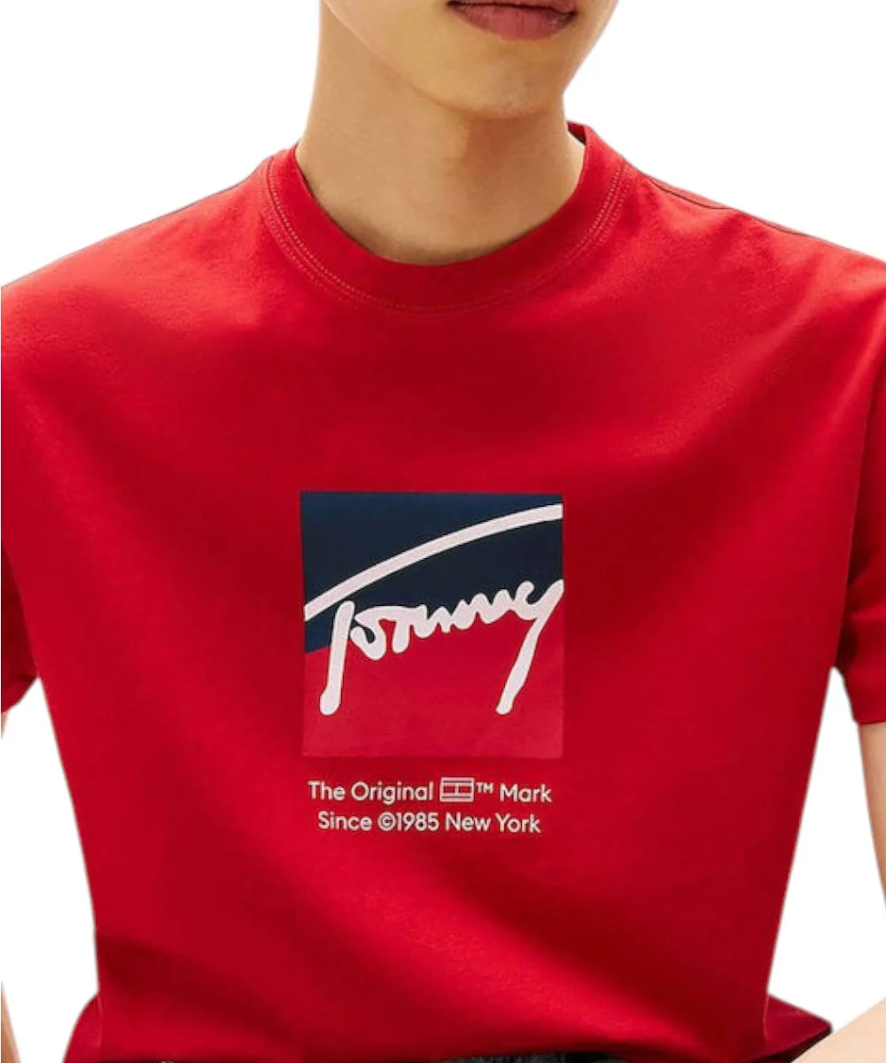 Ανδρικό T-shirt με κοντό μανίκι της εταιρίας Tommy Hilfiger σε κόκκινο χρώμα με στάμπα, για casual εμφανίσεις.