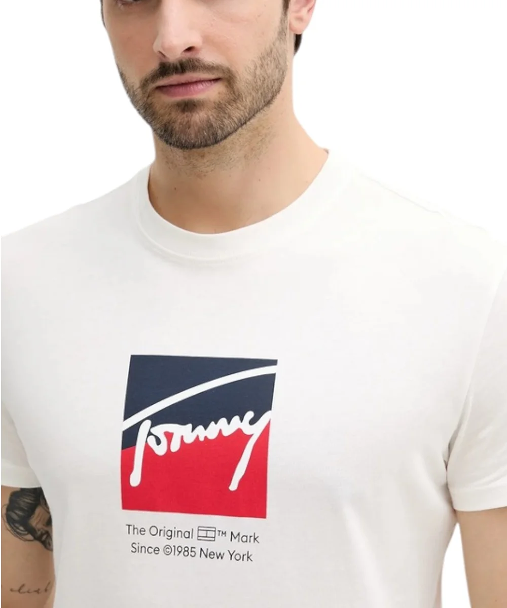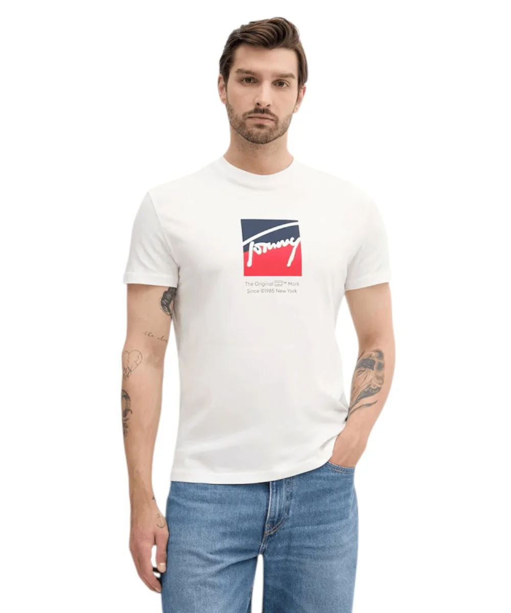 Ανδρικό T-shirt με κοντό μανίκι της εταιρίας Tommy Hilfiger σε κόκκινο χρώμα με στάμπα, για casual εμφανίσεις.