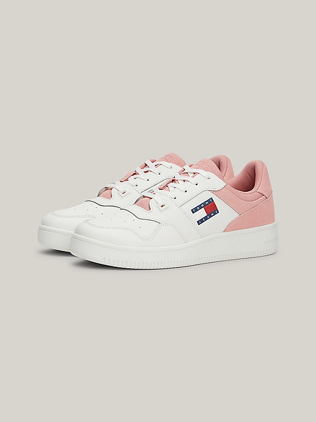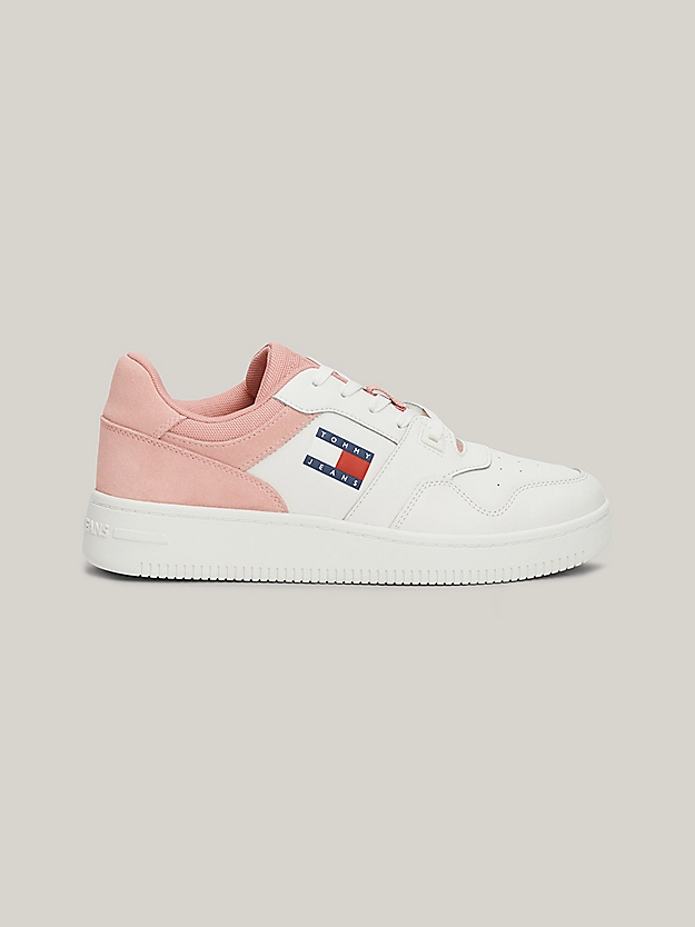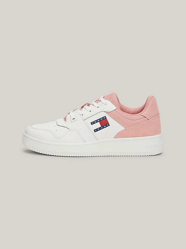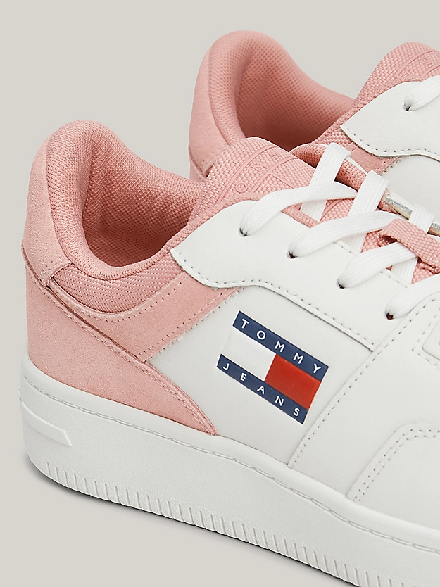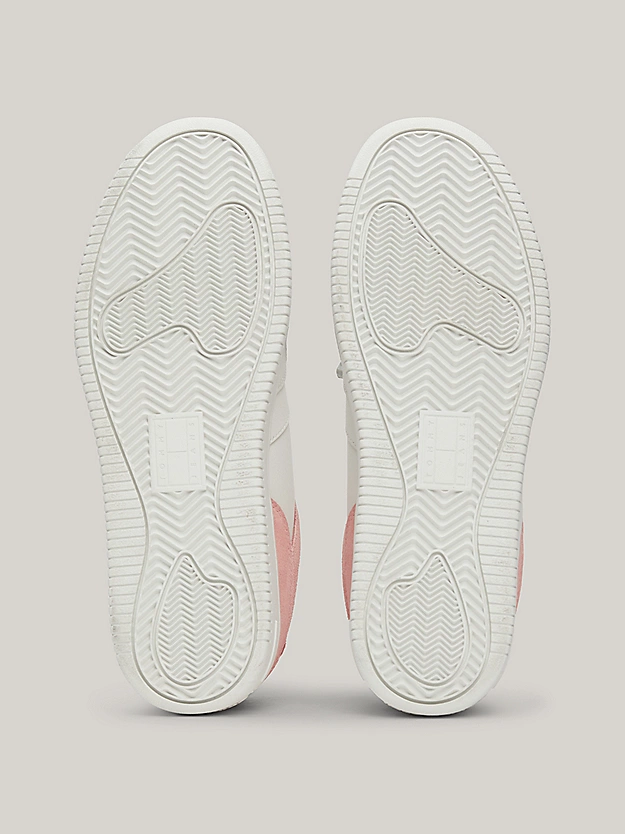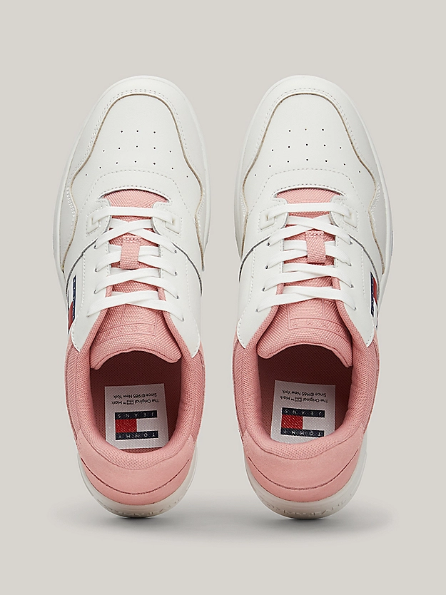 Οι τονικές μικτές υφές αυτών των Sneakers εμπνευσμένων από το μπάσκετ κάνουν τα χρώματα του σήματος Tommy να αναδύονται από το πλάι.