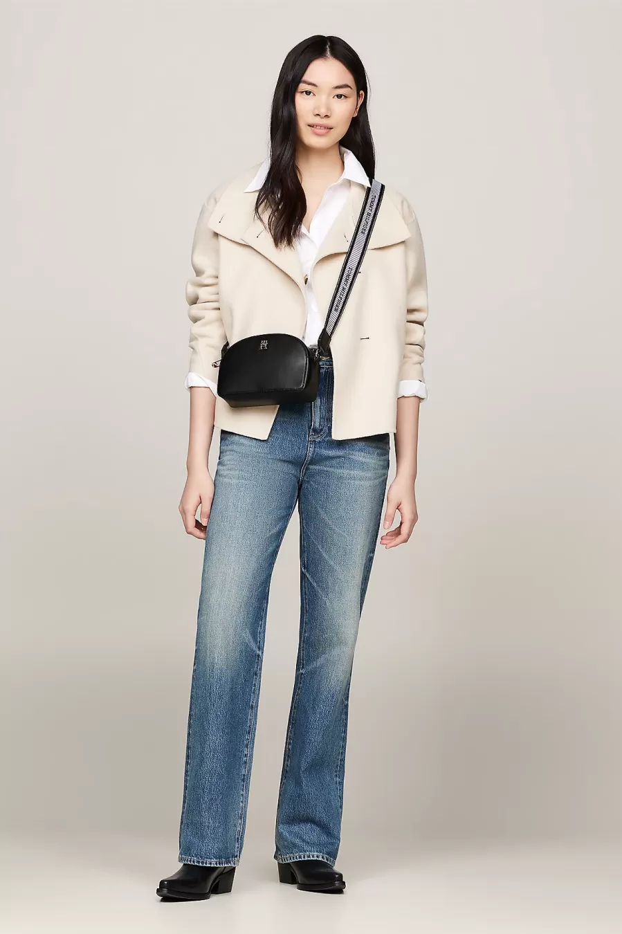 Φέρτε έναν κομψό αέρα σε κάθε ντύσιμο με αυτήν την πολυτελή τσάντα φωτογραφικής μηχανής, που διαθέτει εντυπωσιακό λουράκι με λογότυπο και μονόγραμμα TH.