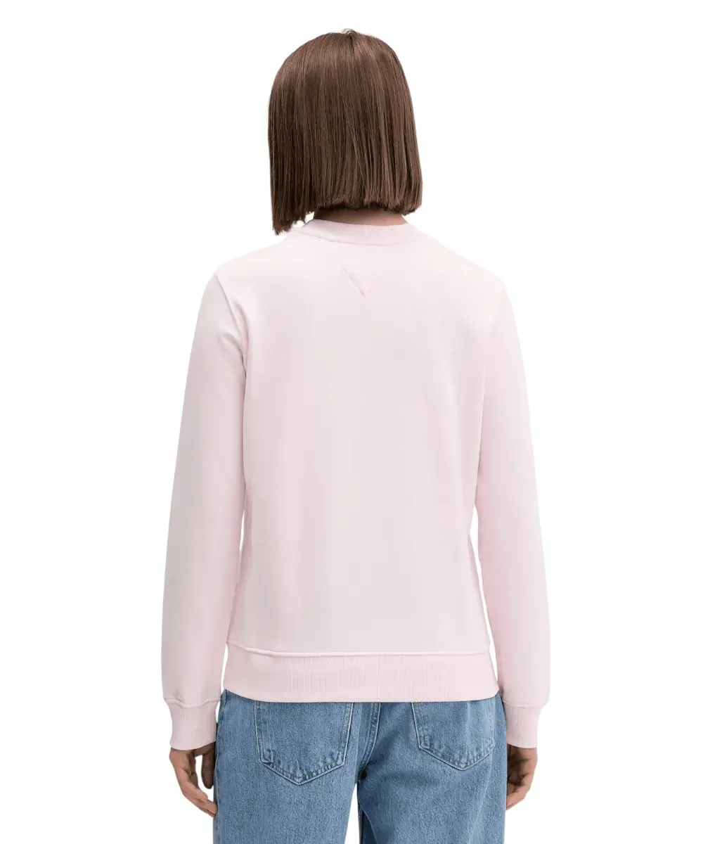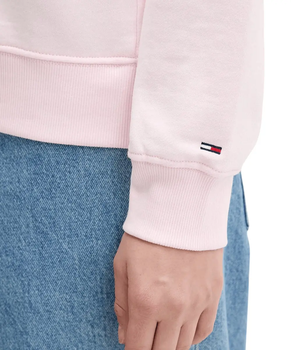 Με regular fit εφαρμογή και κλασική στρογγυλή λαιμόκοψη (crew neck), το φούτερ αναδεικνύει τη σιλουέτα χωρίς να περιορίζει τις κινήσεις. Τα μανίκια και το κάτω άκρο διαθέτουν ριπ φινίρισμα, προσφέροντας σταθερότητα και άνεση. Η λεπτή στάμπα λογοτύπου Tommy Jeans στο στήθος προσθέτει διακριτική, θηλυκή πινελιά στο μοντέρνο look.