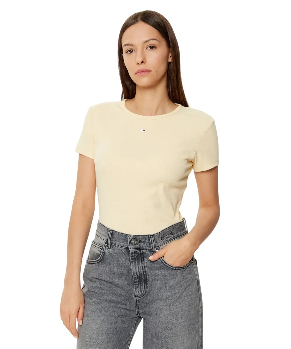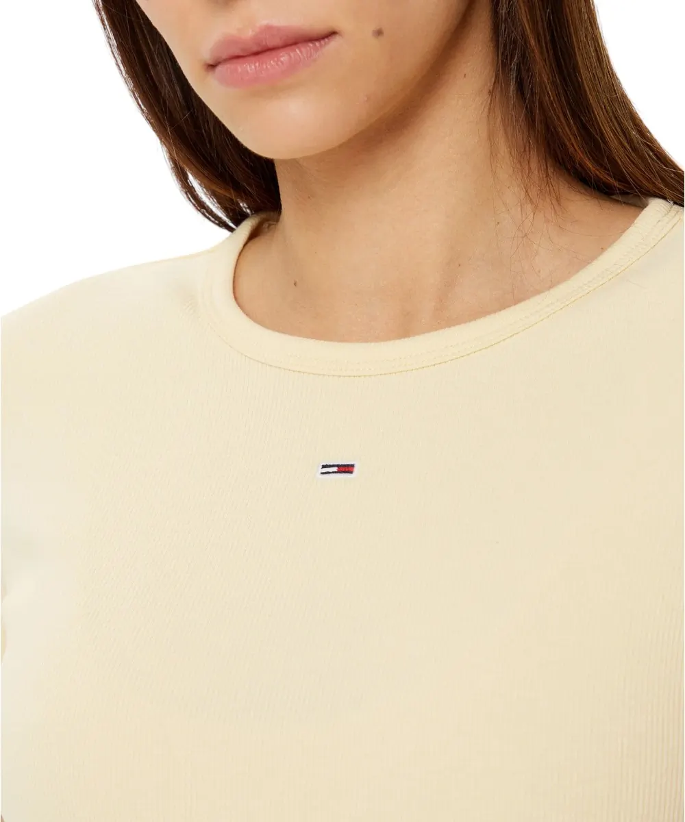 Μπλουζάκι από τη συλλογή Tommy Jeans κατασκευασμένο από λεπτό, ελαστικό πλεκτό. Μοντέλο από εξαιρετικά άνετο βαμβακερό υλικό.