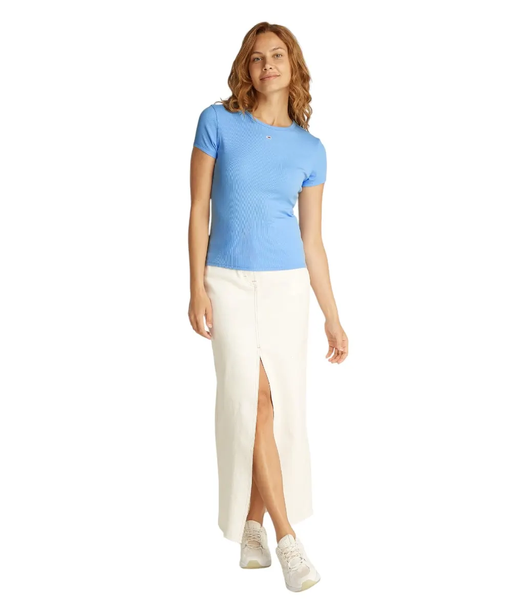 Μπλουζάκι από τη συλλογή Tommy Jeans κατασκευασμένο από λεπτό, ελαστικό πλεκτό. Μοντέλο από εξαιρετικά άνετο βαμβακερό υλικό.