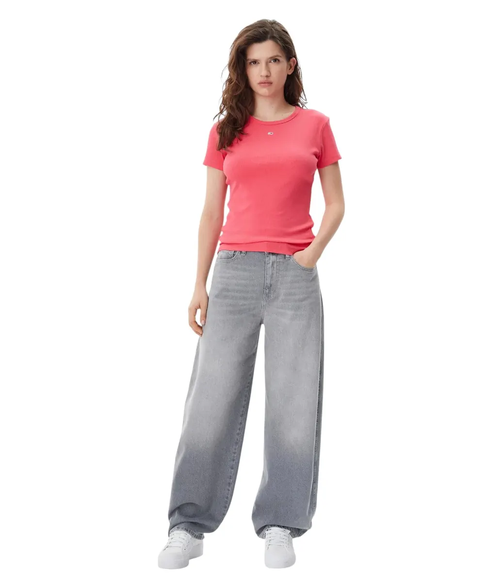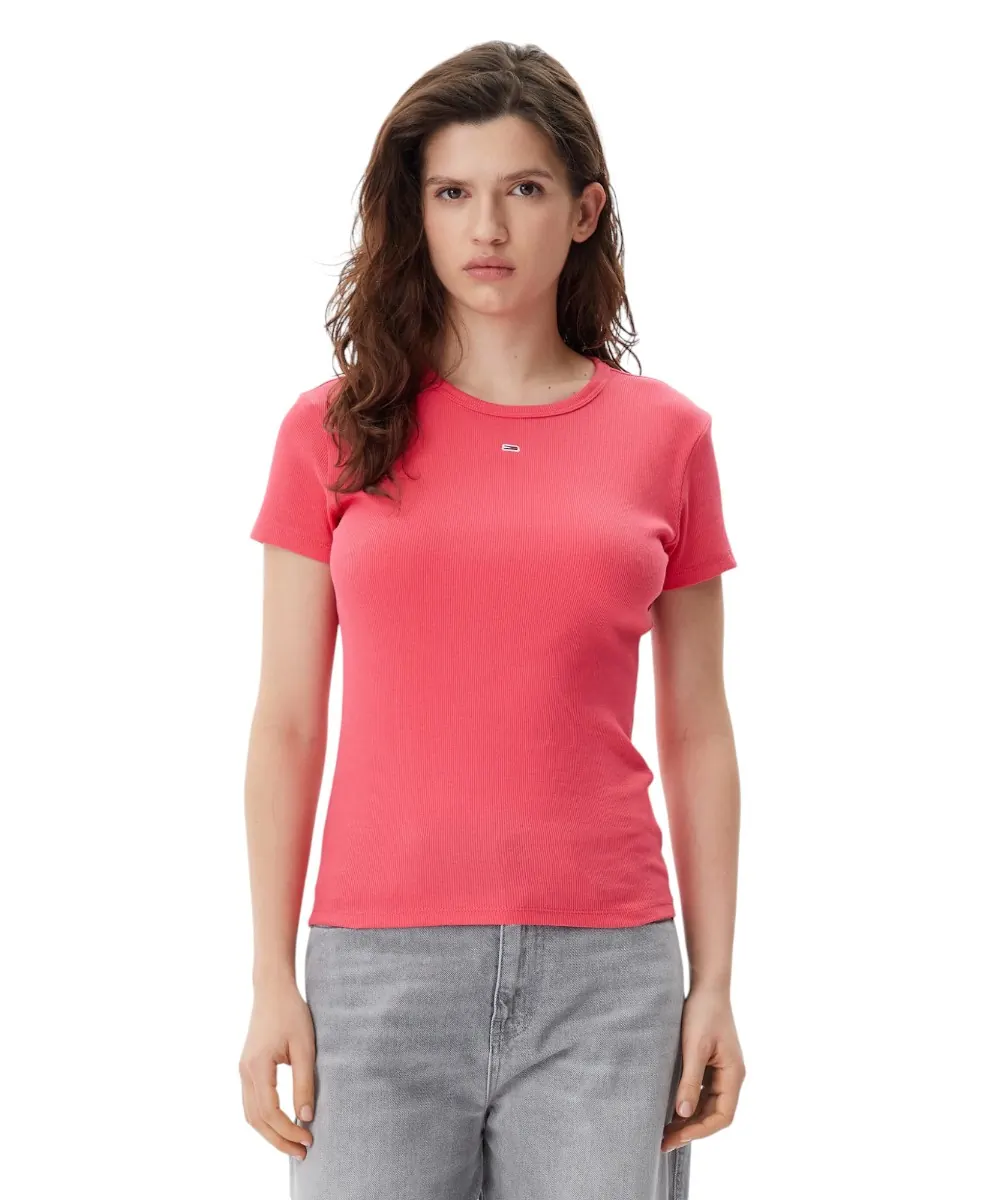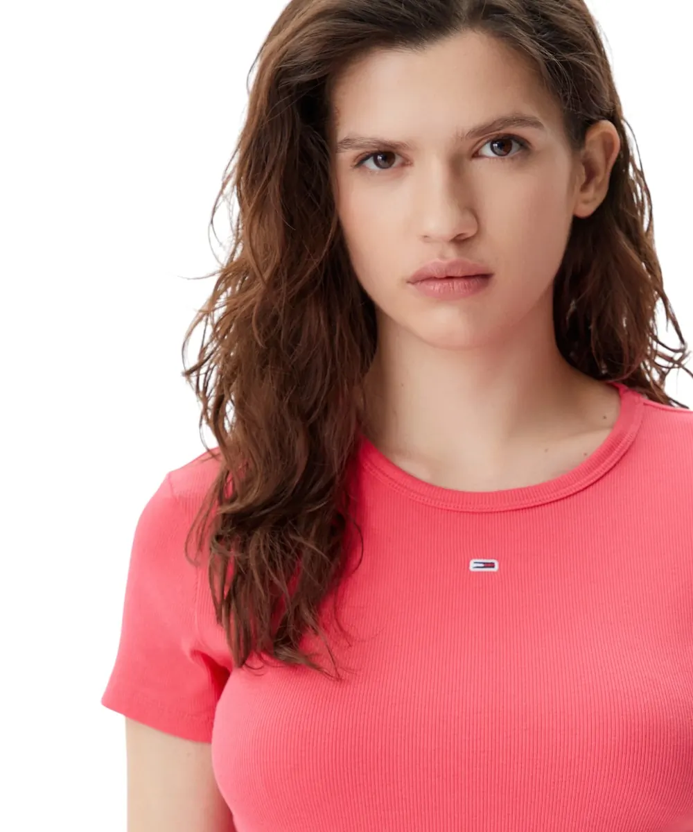 Μπλουζάκι από τη συλλογή Tommy Jeans κατασκευασμένο από λεπτό, ελαστικό πλεκτό. Μοντέλο από εξαιρετικά άνετο βαμβακερό υλικό.