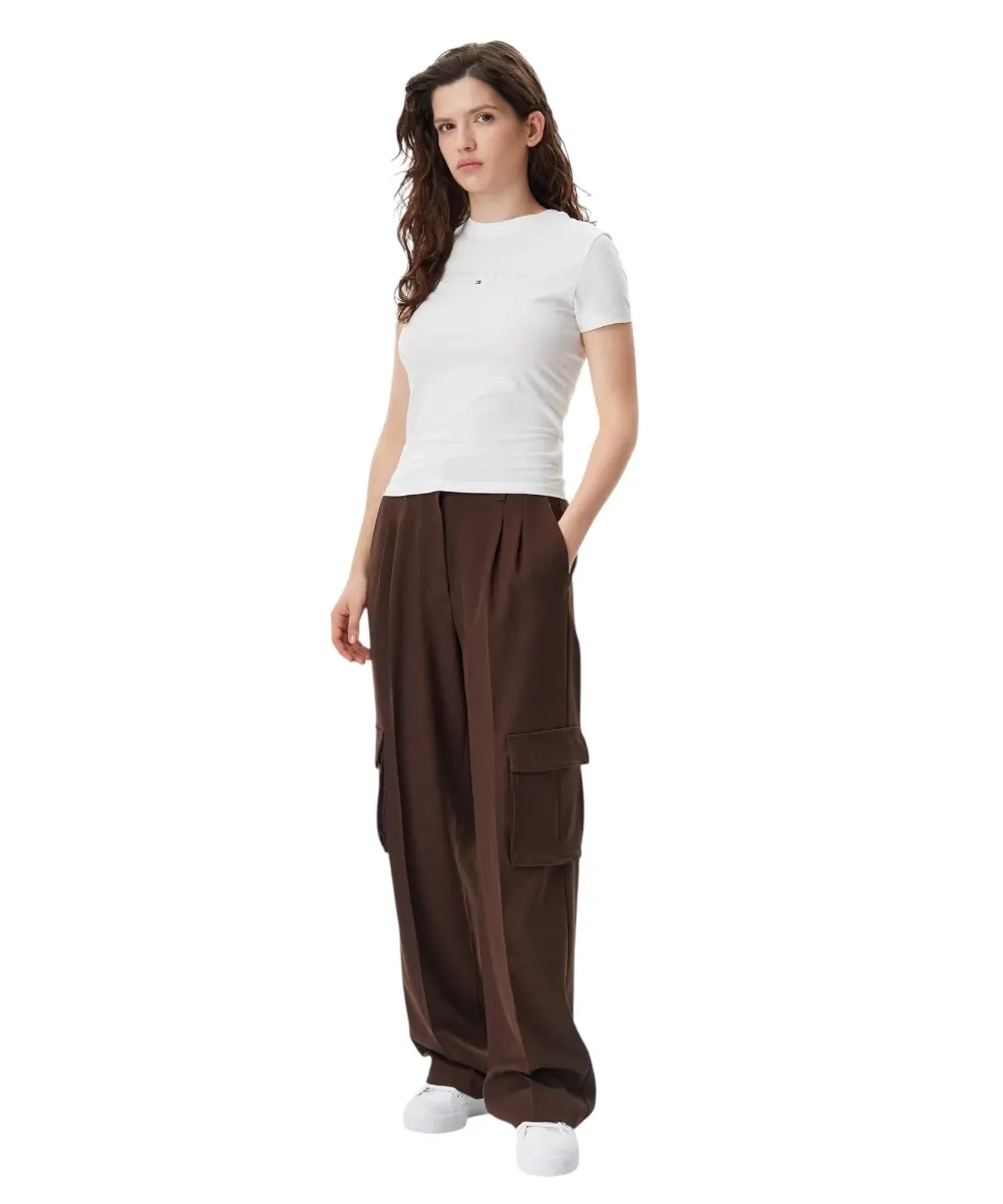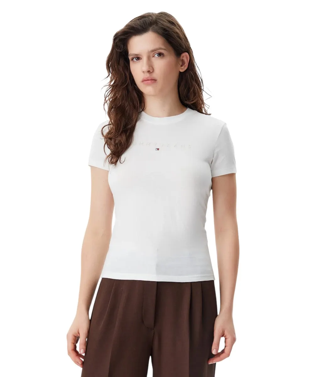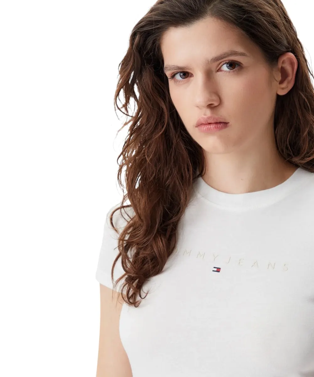 Tommy Hilfiger – Γυναικείο T-shirt Tonal Linear Slim Fit DW0DW20315-YBL Εκρού