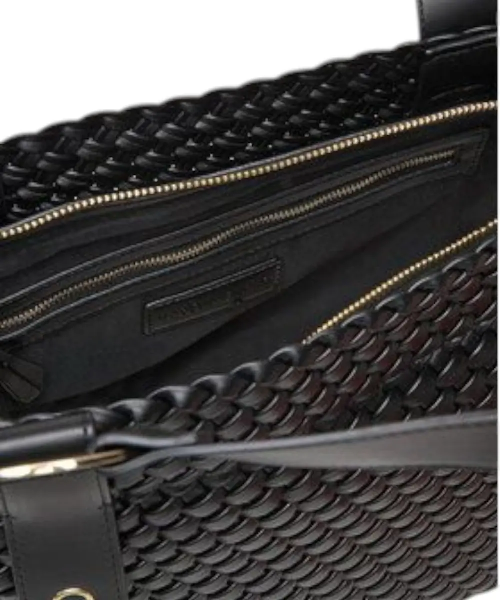 Ο εσωτερικός χώρος περιλαμβάνει δύο εσωτερικές τσέπες για εύκολη οργάνωση, ενώ οι λεπτομέρειες σε αντίθεση και το λογότυπο Valentino ολοκληρώνουν την κομψή αισθητική. Το κλείσιμο με φερμουάρ εξασφαλίζει ασφάλεια και προστασία των αντικειμένων σας.