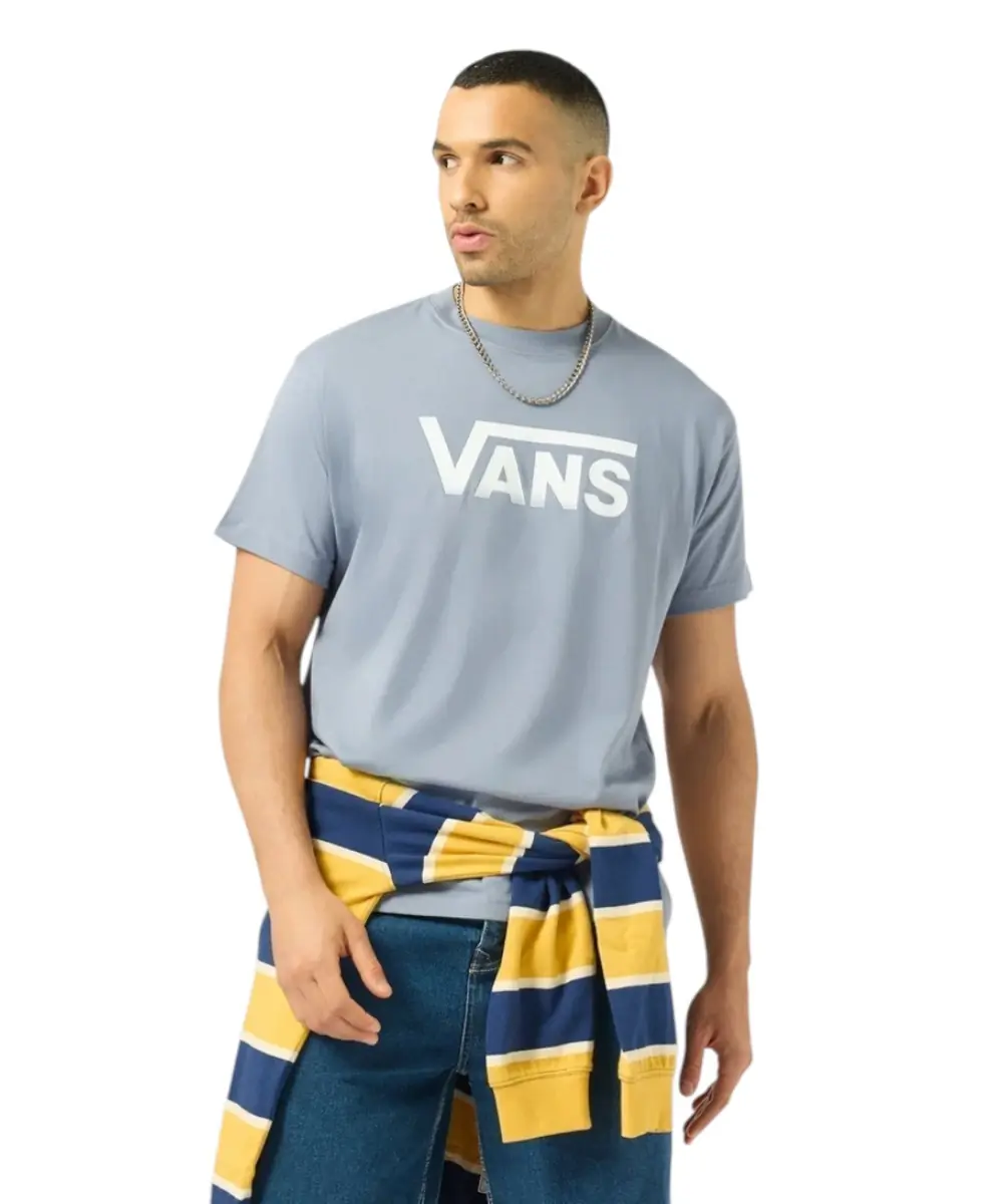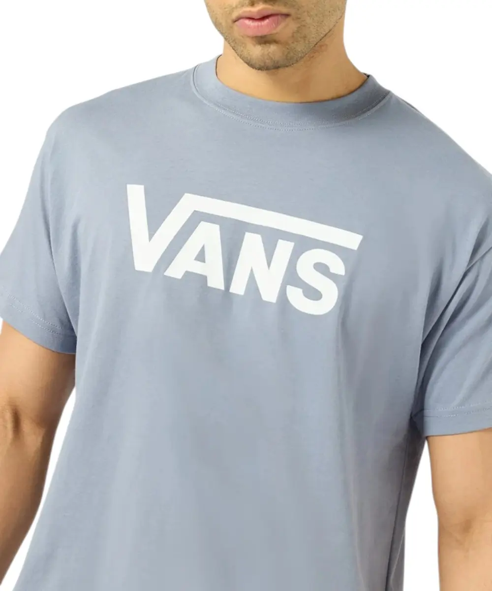 Ανδρικό t-shirt της Vans σε γαλαζωπό χρώμα που συνδυάζει άνεση και αυθεντικό street style. Διαθέτει κοντά μανίκια και κλασική στρογγυλή λαιμόκοψη, ενώ η στάμπα με το χαρακτηριστικό λογότυπο της Vans στο μπροστινό μέρος προσθέτει δυναμικό χαρακτήρα και αναδεικνύει το skate DNA του brand.